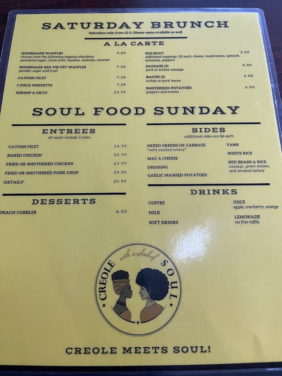 Guest reviews highlight the attentive staff, notably Jayla, whose warmth adds to the inviting atmosphere. Whether indulging in fried green tomatoes or succulent creole catfish, each dish reflects a dedication to freshness and authentic seasoning. Slated as a must-visit for food lovers, this restaurant is more than just a meal; it’s a celebration of culture and community.